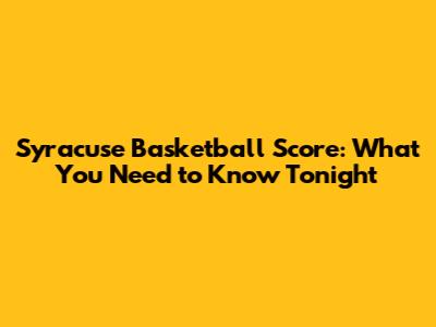 Syracuse Basketball Score: What You Need to Know Tonight