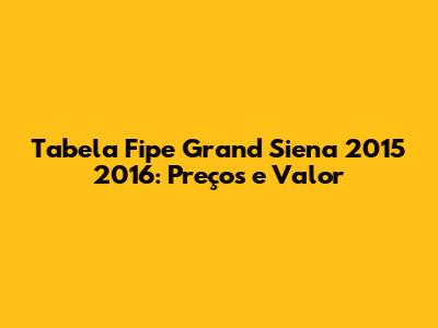Tabela Fipe Grand Siena 2015 2016: Preços E Valor