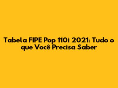 Tabela FIPE Pop 110i 2021: Preços E Informações