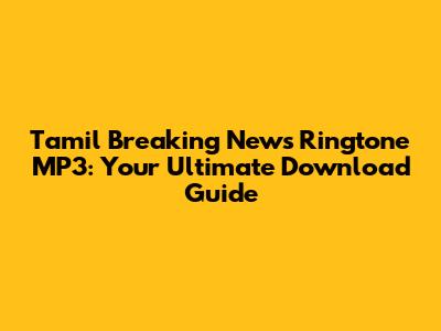 Tamil Breaking News Ringtone MP3: Download Guide