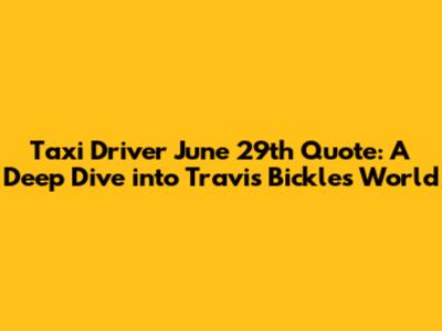 Taxi Driver June 29th Quote: Deep Dive & Analysis