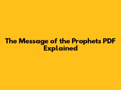 The Message Of The Prophets PDF Explained