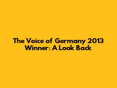 Hey guys! Let's rewind the clock and dive into the world of The Voice of Germany 2013! It's always fun to reminisce about past seasons, especially when we're talking about a show that has launched so many talented artists. We're here to celebrate the winner of that year and take a closer look at their journey, the impact they made, and where they are now. This article is your ultimate guide to everything you need to know about the 2013 champion, their musical path, and the lasting impression they've left on the German music scene. So, grab your snacks, get comfortable, and let's get started on this musical trip down memory lane. I promise it will be an interesting ride, filled with memorable performances, nail-biting moments, and of course, the voice that captured the hearts of millions. Ready? Let's go!