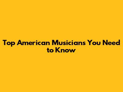 Top American Musicians You Need To Know