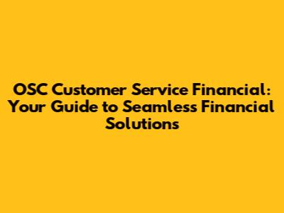 Hey guys! Ever feel like navigating the world of financial services is like trying to solve a Rubik's Cube blindfolded? You're not alone! That's where OSC Customer Service Financial steps in, acting as your trusty guide through the often-confusing maze of financial management. Whether you're dealing with investments, loans, or just trying to get a handle on your budget, understanding the ins and outs of OSC Customer Service Financial can make a world of difference. Let’s dive deep into what makes this service tick and how it can benefit you.