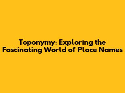 Toponymy: Exploring The Fascinating World Of Place Names