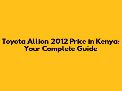Toyota Allion 2012 Price In Kenya: A Comprehensive Guide