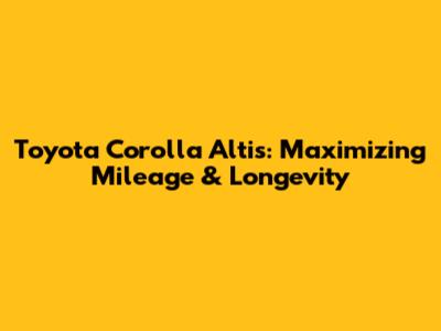 Toyota Corolla Altis: Maximizing Mileage & Longevity