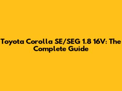 Toyota Corolla SE/SEG 1.8 16V: The Complete Guide