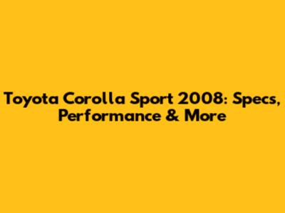 Toyota Corolla Sport 2008: Specs, Performance & More