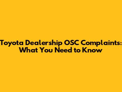Toyota Dealership OSC Complaints: What You Need To Know