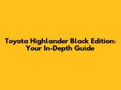 Toyota Highlander Black Edition: Ultimate Guide