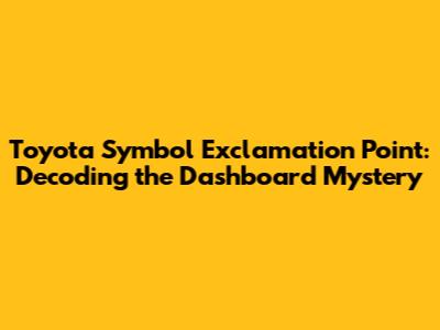 Hey there, car enthusiasts! Ever been cruising in your Toyota and suddenly noticed a symbol on your dashboard that looks like an exclamation point? Yeah, that little guy can be a bit alarming if you don't know what he's trying to tell you. Let's break down what that Toyota symbol exclamation point means, why it's popping up, and what you should do about it. No need to panic, we've got you covered!