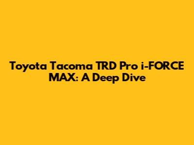 Let's dive deep, guys, into the Toyota Tacoma TRD Pro i-FORCE MAX. This beast isn't just another truck; it's a statement. We're talking about a machine engineered for serious off-road adventures while still packing the comfort and tech you need for daily driving. This article will cover everything from its raw power and rugged design to its advanced features and overall value. So, buckle up and let's explore what makes the Tacoma TRD Pro i-FORCE MAX a top contender in the off-road truck market. For those of you considering adding this incredible machine to your garage, you're in for a treat. The blend of Toyota's legendary reliability with the enhanced performance of the i-FORCE MAX engine creates a compelling package. Whether you're navigating rocky trails or cruising down the highway, this truck is designed to impress. We'll break down the specifics, including the engine's capabilities, the suspension system's prowess, and the interior's comfort and technological integrations. Plus, we'll look at how it stacks up against its competitors and what real-world users are saying about their experiences. By the end of this article, you'll have a comprehensive understanding of what the Tacoma TRD Pro i-FORCE MAX brings to the table and whether it's the right truck for your needs. So, let's get started and explore all the exciting details of this impressive vehicle.