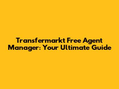 Transfermarkt Free Agent Manager: Your Ultimate Guide