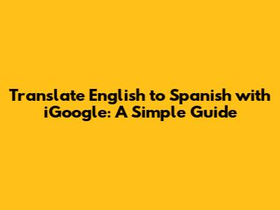 Translate English To Spanish With IGoogle: A Simple Guide
