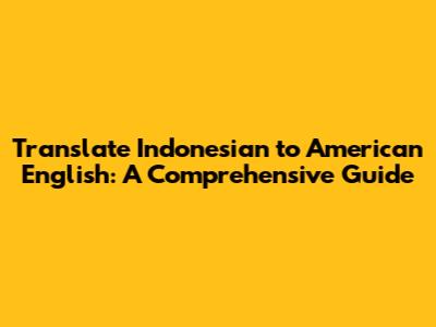 Translate Indonesian To American English: A Comprehensive Guide