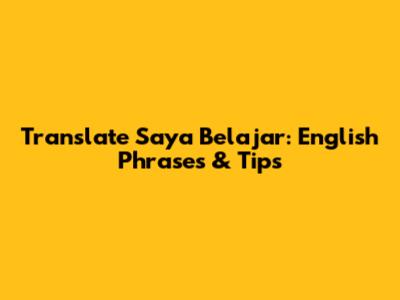 Translate 'Saya Belajar': English Phrases & Tips