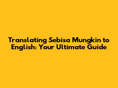 Translating Sebisa Mungkin To English