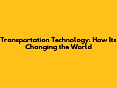 Transportation Technology: How It's Changing The World