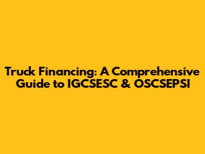 Truck Financing: A Comprehensive Guide To IGCSESC & OSCSEPSI