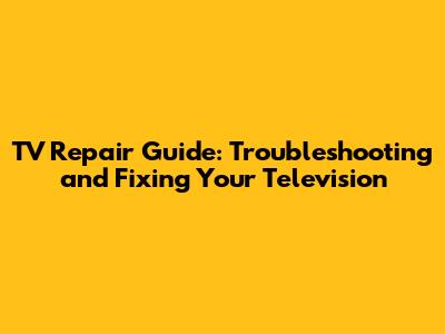 TV Repair Guide: Troubleshooting And Fixing Your Television