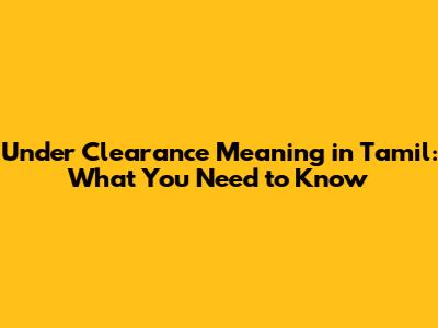 Under Clearance Meaning In Tamil: What You Need To Know