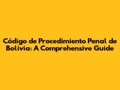 Hey guys! Ever wondered about the ins and outs of the Bolivian Criminal Procedure Code? It's a pretty crucial piece of legislation that governs how criminal proceedings are conducted in Bolivia. So, whether you're a law student, a legal professional, or just someone curious about the justice system, let's dive deep into this fascinating topic. We'll break it down in a way that's easy to understand and super informative. This guide aims to provide a comprehensive overview of the code, making it accessible and engaging for everyone.