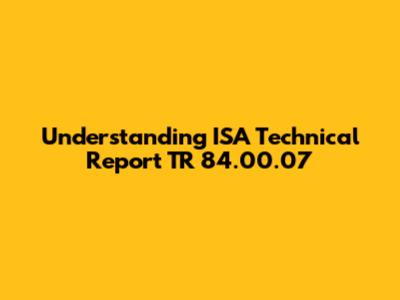 Understanding ISA Technical Report TR 84.00.07