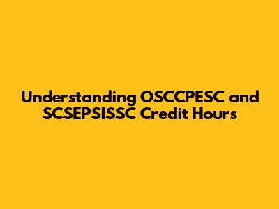Understanding OSCCPESC And SCSEPSISSC Credit Hours