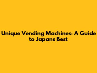 Unique Vending Machines: A Guide To Japan's Best