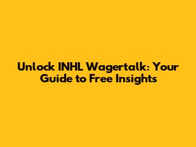 Unlock INHL Wagertalk: Your Guide To Free Insights