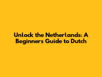 Unlock The Netherlands: A Beginner's Guide To Dutch