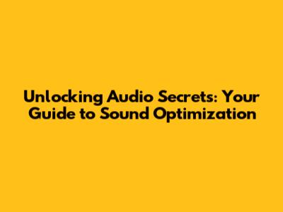 Unlocking Audio Secrets: Your Guide To Sound Optimization