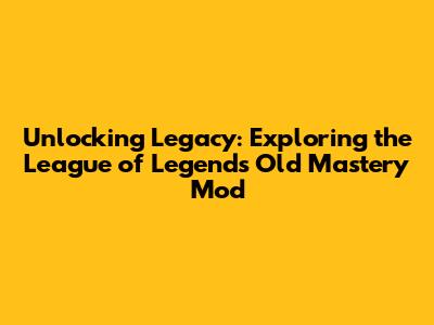Unlocking Legacy: Exploring The League Of Legends Old Mastery Mod