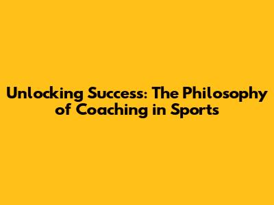 Unlocking Success: The Philosophy Of Coaching In Sports