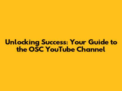 Unlocking Success: Your Guide To The OSC YouTube Channel