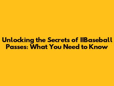 Unlocking The Secrets Of IIBaseball Passes: What You Need To Know