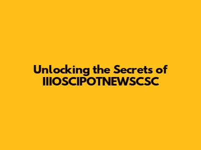 Unlocking The Secrets Of IIIOSCIPOTNEWSCSC