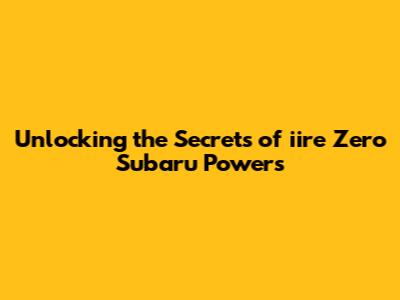 Unlocking The Secrets Of Iire Zero Subaru Powers