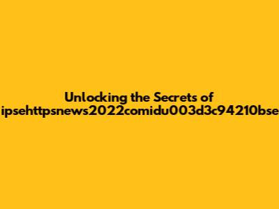 Unlocking The Secrets Of Ipsehttpsnews2022comidu003d3c94210bse
