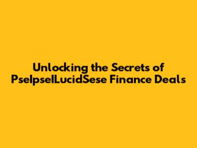 Unlocking The Secrets Of PseIpseILucidSese Finance Deals