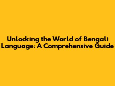 Unlocking The World Of Bengali Language: A Comprehensive Guide