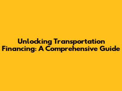 Unlocking Transportation Financing: A Comprehensive Guide
