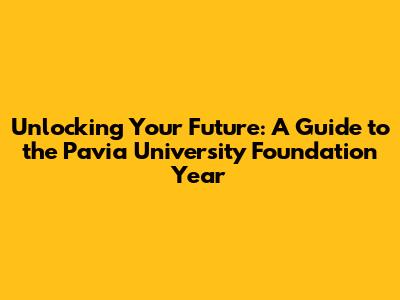 Unlocking Your Future: A Guide To The Pavia University Foundation Year