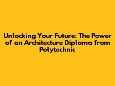 Unlocking Your Future: The Power Of An Architecture Diploma From Polytechnic