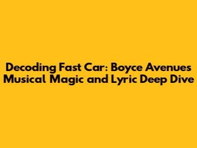 Hey music lovers! Ever gotten completely lost in a song, feeling every beat and word sink deep into your soul? Well, if you're a fan of Boyce Avenue and their amazing acoustic covers, then you've probably felt that way about their rendition of 'Fast Car'. Tracy Chapman's original is a masterpiece in its own right, but when Boyce Avenue takes the stage, they bring their own unique flavor, turning a classic into something fresh and exciting. In this article, we're diving headfirst into the world of Boyce Avenue's 'Fast Car', dissecting the lyrics, exploring the music, and figuring out what makes it so darn captivating. We'll be looking at how the band put their own spin on the song, what the lyrics are really saying, and why it continues to resonate with so many people, including yours truly. So, buckle up, grab your headphones, and let's go on this musical adventure together!