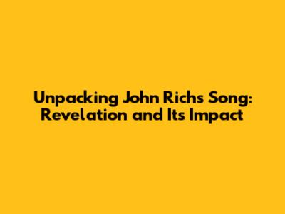 Unpacking John Rich's Song: Revelation And Its Impact