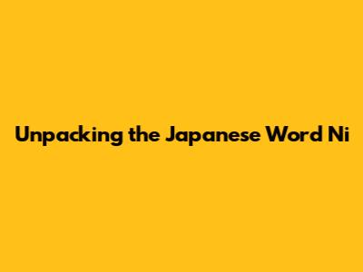 Unpacking The Japanese Word 'Ni'