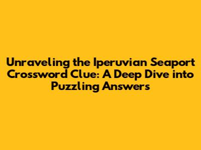 Hey crossword enthusiasts, puzzle solvers, and word wizards! Ever found yourself staring at a crossword clue, scratching your head, and wondering about the mysterious "Iperuvian seaport"? Well, you're not alone! This seemingly simple clue can lead you down a rabbit hole of geography, history, and even a little bit of trivia. Let's dive deep and unravel the mystery surrounding the Iperuvian seaport crossword clue, exploring potential answers and the fascinating context that brings them to life. Get ready to flex those mental muscles and become a crossword clue-solving pro!
